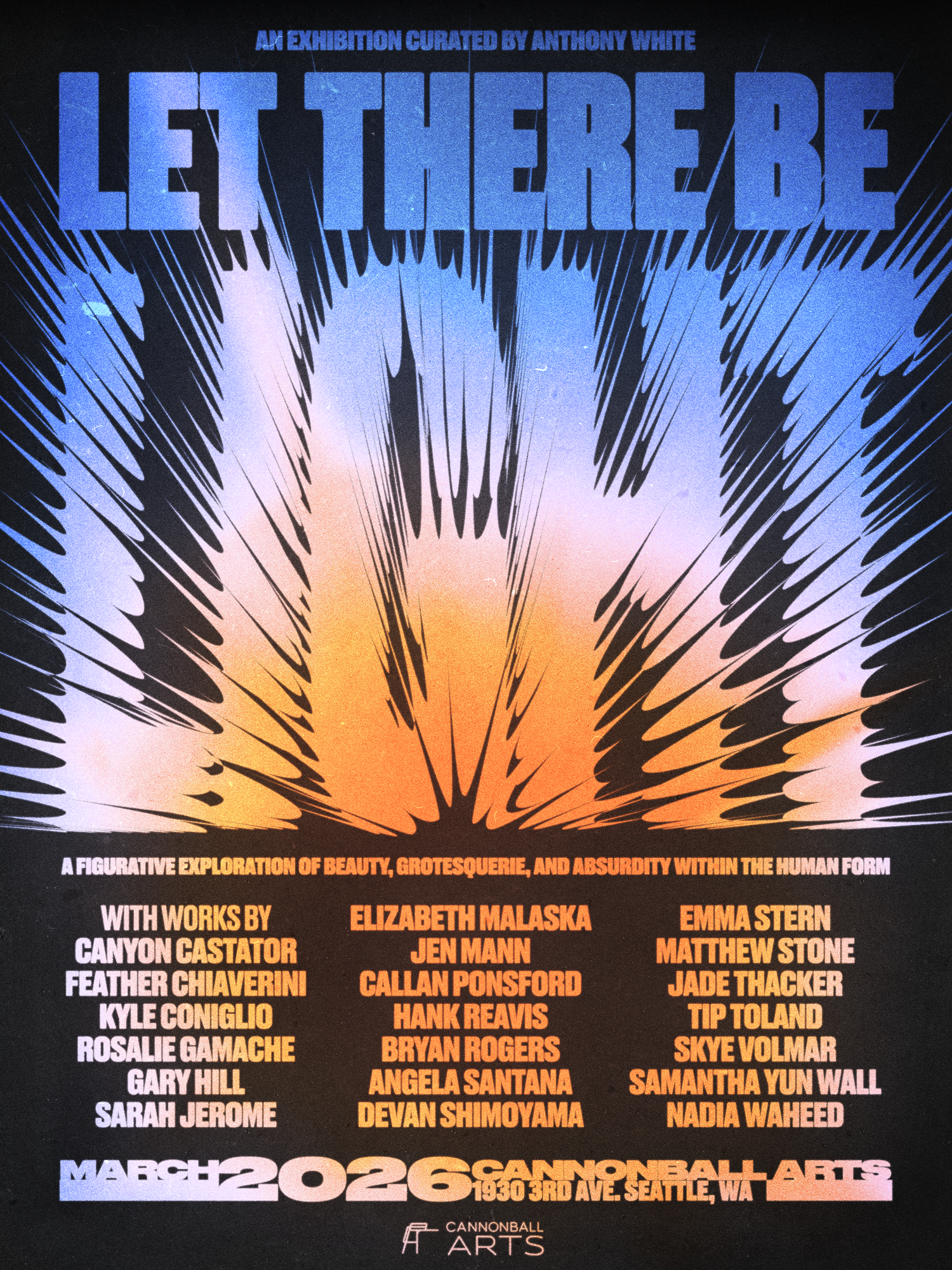 Let There Be Light acknowledges our bodies and behaviors in exaggerated ways that makes them beautiful for the same reasons they might otherwise be deemed revolting. Alternative binaries emerge, ones that have the power to unsettle narrow ways of seeing. And by severing the tension that exists between celebration and censorship, the exhibition positions light and dark not as opposites, but rather as partners in dance; intertwined, in tension, and always in motion.